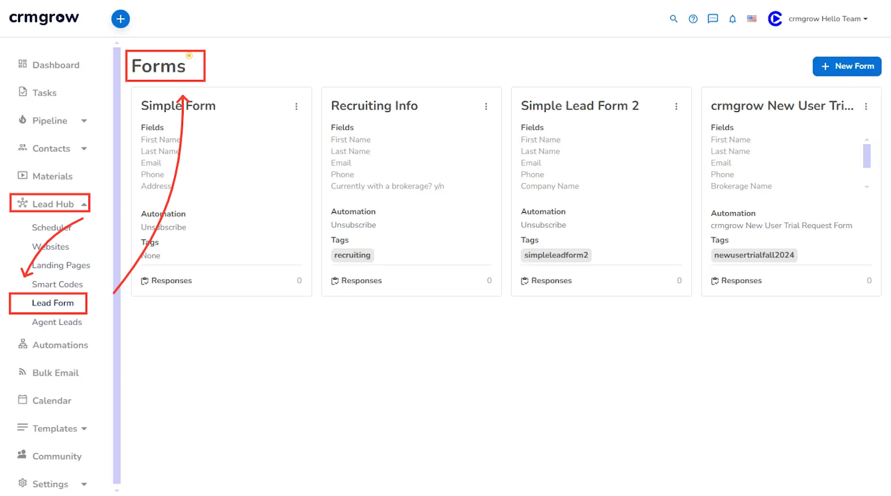 Click on "Lead Forms".