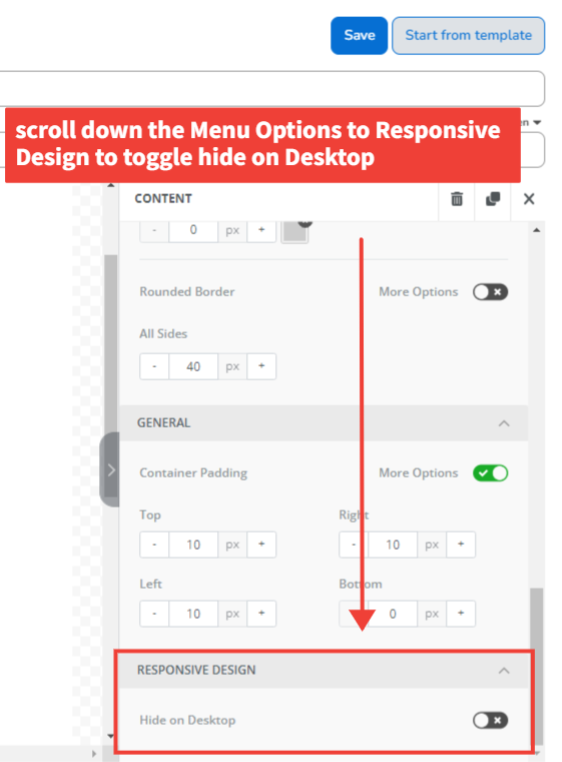 You can also scroll to the bottom of that Container menu, and toggle Desktop OFF, for a Mobile ONLY Newsletter Template.