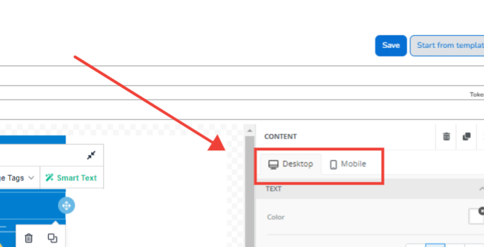 When you have a Newsletter Template open, and click on a specific Container (field of information within the Newsletter), you can preview it by clicking on the options of Desktop or Mobile mode. This will also give you insight into any adjustments you may want to make for a cohesive flow of information in both formats.